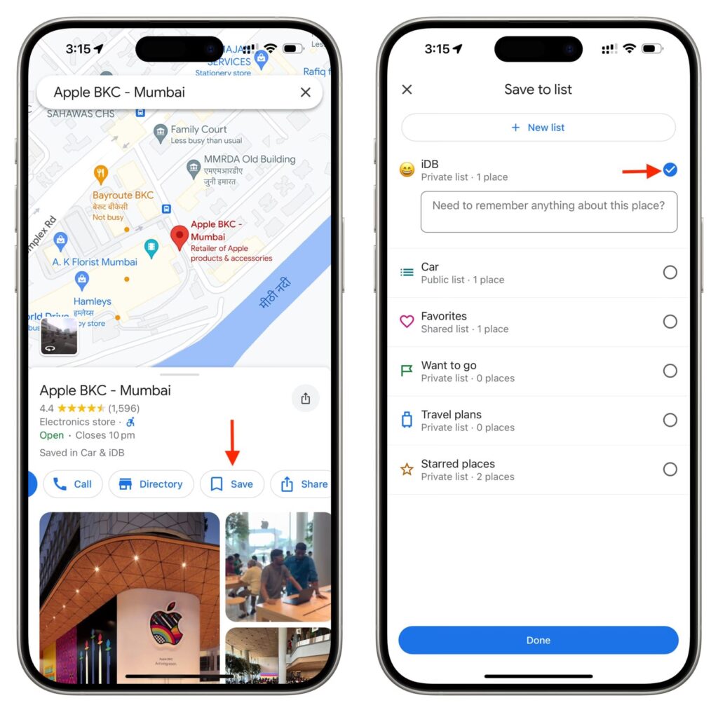 - Google Maps vil sandsynligvis foreslå relevante placeringer baseret på billedets metadata (hvis det er geotagget). Vælg den korrekte placering fra listen, eller søg manuelt.