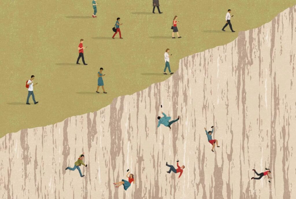 En særlig bekymrende tendens er den stigende forekomst af depression og selvmord blandt unge, især piger, der er forbundet med mobilafhængighed. Mellem 2010 og 2015 steg selvmordsraten blandt unge piger med 65%, mens raten af svær depression steg med 58%. Forskere mener, at dette kan skyldes den konstante sammenligning med idealiserede og filtrerede liv på sociale medier, hvilket underminerer unges selvværd.
