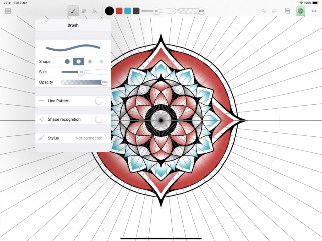 Amaziograph er en tegneapp, der primært er kendt for sine avancerede symmetriværktøjer. Hvor de fleste tegneapps lader dig tegne frit, giver Amaziograph dig mulighed for at vælge mellem en række forskellige symmetri-indstillinger – fra enkel spejling til komplekse radiale og kalejdoskopiske mønstre. Dette betyder, at hvert strøg, du tegner, automatisk gentages og transformeres i henhold til den valgte symmetri, hvilket skaber øjeblikkeligt imponerende og harmoniske designs. Denne funktion er dens absolutte kernestyrke og det, der lokker brugere til at downloade appen frem for mere generelle tegneapps som Procreate eller Affinity Designer.