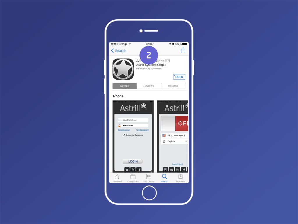 - Find Astrill VPN i din enheds app-butik: Åbn app-butikken, søg efter Astrill VPN, og download appen.