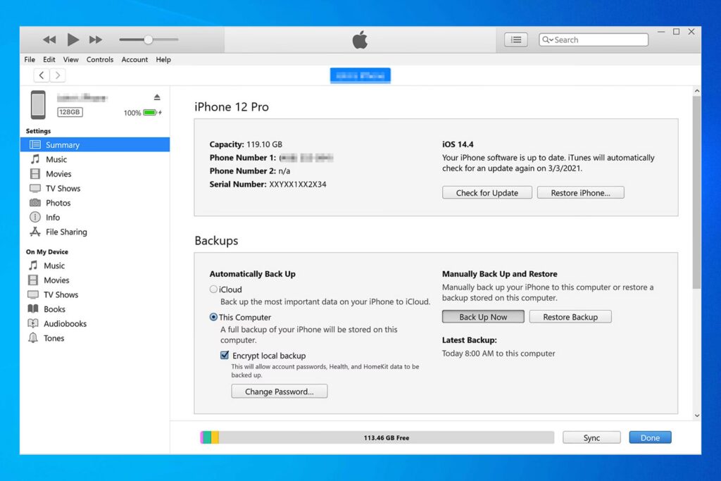 iTunes er Apples oprindelige offline-løsning til sikkerhedskopiering, og det er et gratis og pålideligt værktøj. Det fungerer på Windows PC'er (Windows 11, 10, 8, 7) og på Mac-computere med macOS 10.15 Catalina eller ældre.