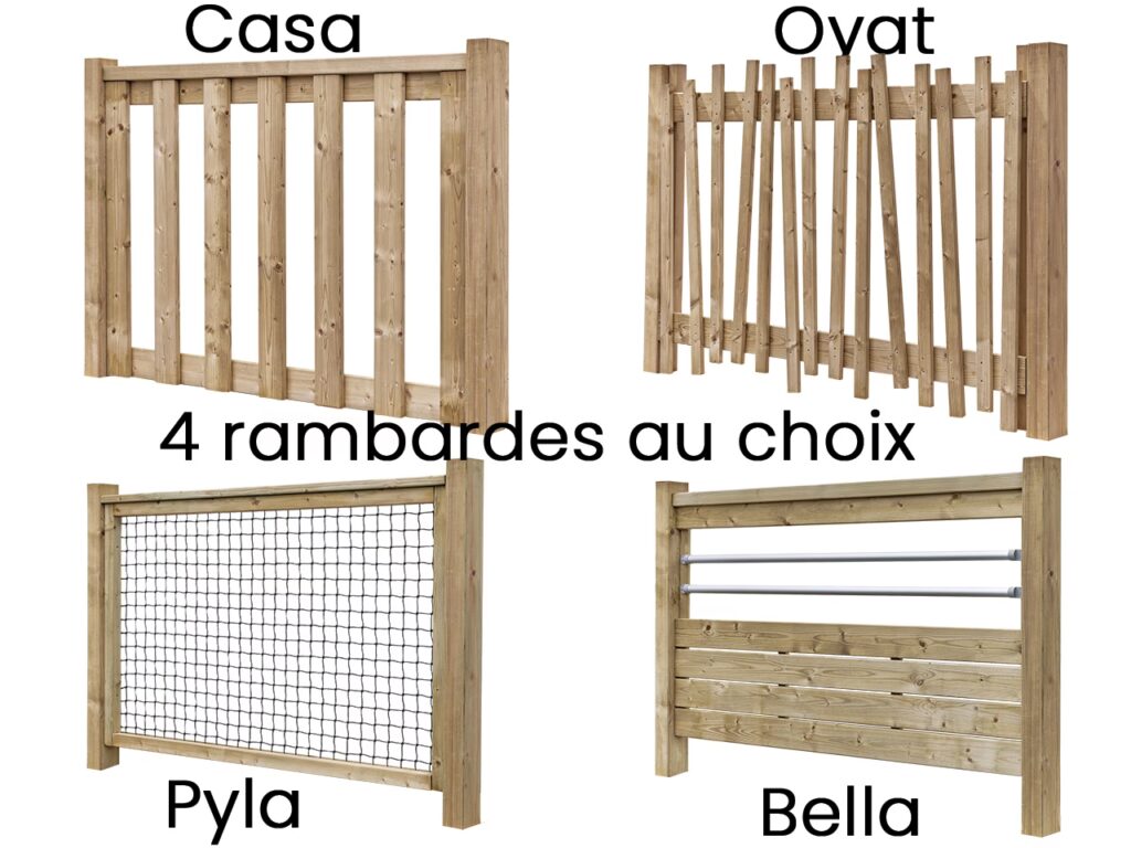 For sikkerhed og privatliv kan du vælge forskellige typer gelændere og afskærmninger. Mulighederne inkluderer alt fra enkle rækværk i træ eller metal til mere moderne glasafskærmninger, der giver uhindret udsigt.