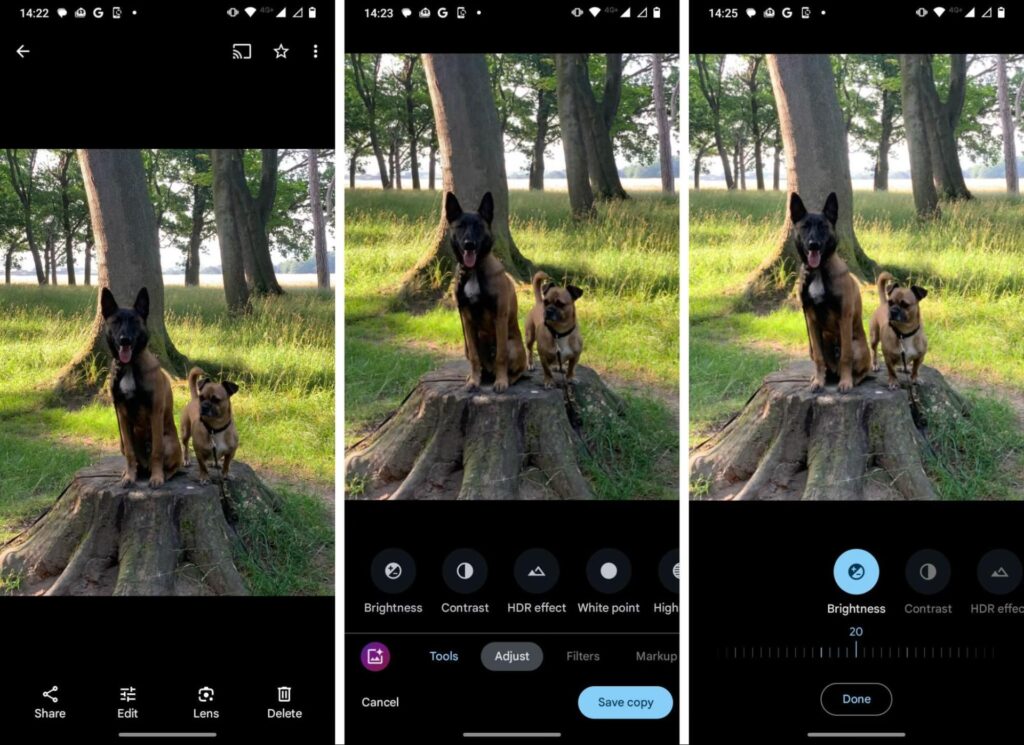 Google Photos, der ofte er forudinstalleret på Android-enheder, er en utrolig brugervenlig app, selvom dens primære formål er backup. Den tilbyder tilstrækkelige værktøjer til almindelig billedredigering, herunder hurtige justeringer af lys, beskæring og anvendelse af filtre. Dine redigerede billeder kan nemt tilgås på tværs af dine enheder via din Google-konto.