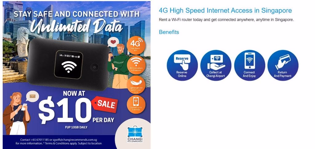 - Forudbestil enheden før din rejse og afhent den i lufthavnen: Denne metode giver dig mulighed for at have Pocket WiFi'en klar til brug, så snart du ankommer, hvilket sparer dig tid og besvær. Større lufthavne i Singapore, såsom Changi Lufthavn, har normalt udpegede skranker, hvor du kan afhente din lejede enhed. Når du er færdig med at bruge den, skal du returnere den i henhold til udbyderens instruktioner.