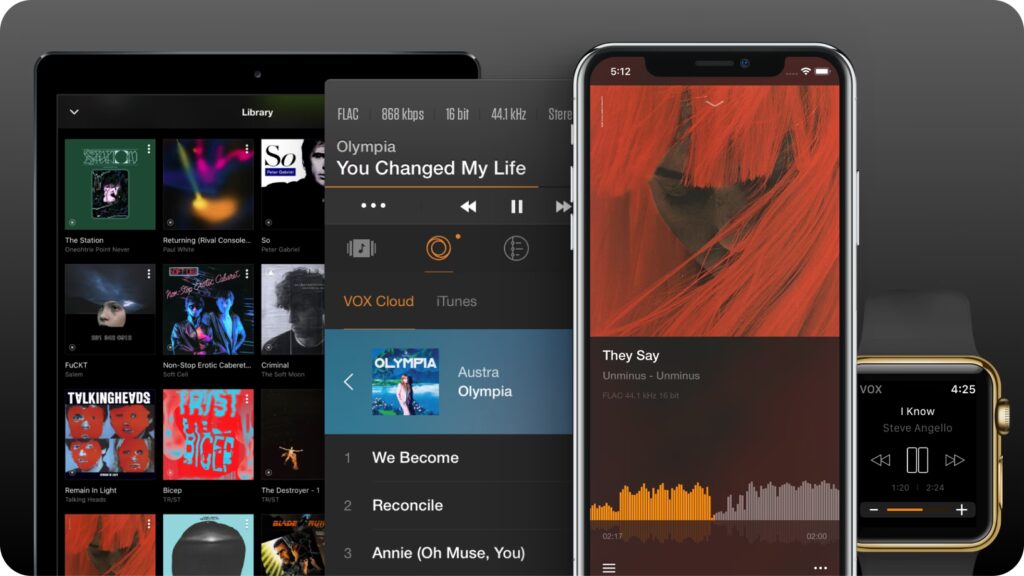 | VOX – MP3 & FLAC Music Player | Hi-Res lyd, FLAC & andre formater, offline afspilning, integration med SoundCloud/Spotify, gestusbaseret. | iPhone, Mac | Gratis, in-app køb |
