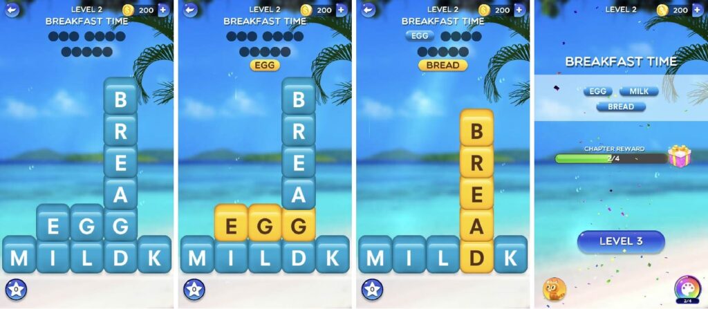 | Word Collect | Ordforbindelse/Stryg | Ja | Nej | Over 2500 niveauer, gradvis sværhedsgrad |