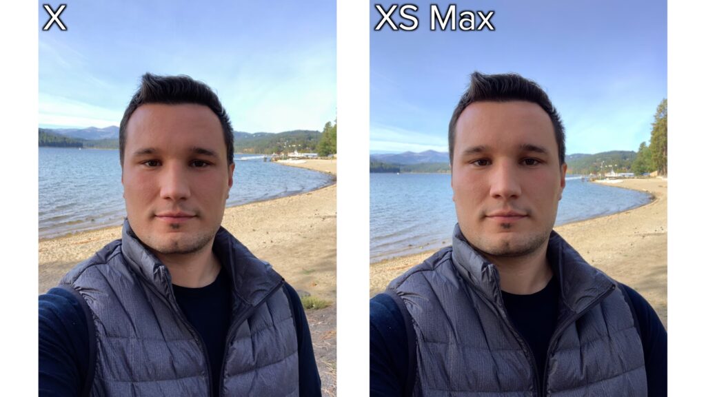Frontkameraet på Apple iPhone XS Max leverer en solid ydeevne, der er i stand til at give fremragende resultater for både stillbilleder og video. Den har gode styrker på begge områder, og for stillbilleder tilbyder XS Max noget af den bedste HDR-behandling, dybdeskarphedsestimering på bokeh-billeder og detaljer på nærbilleder af selfies udendørs, som er observeret til dato. Videopotentialet er også forbedret, med inkluderingen af HDR, der sikrer god eksponering med flotte farver i skarpt lys; og stabiliseringssystemet er bedre end på iPhone X, hvilket giver jævne resultater for videoer, hvor man går eller panorerer.