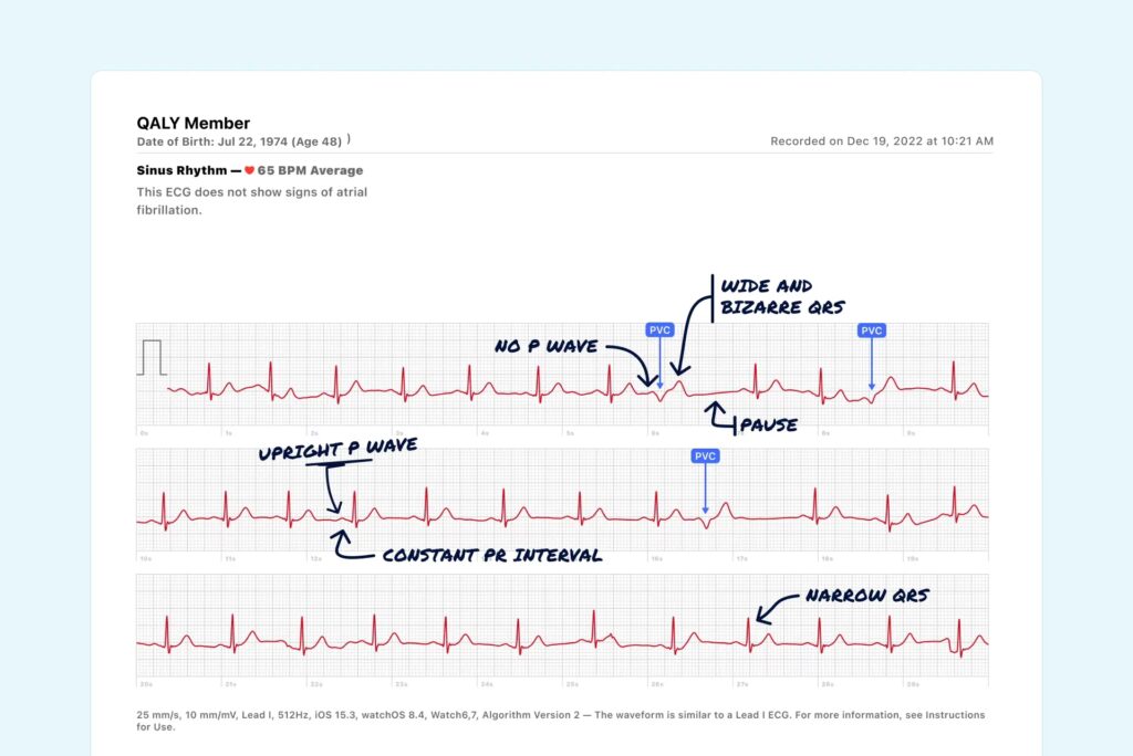 | Sinusrytme | Dit hjerte slår i et normalt, regelmæssigt mønster. | Dette er generelt et positivt tegn. Fortsæt med at overvåge din hjertehelbred. |