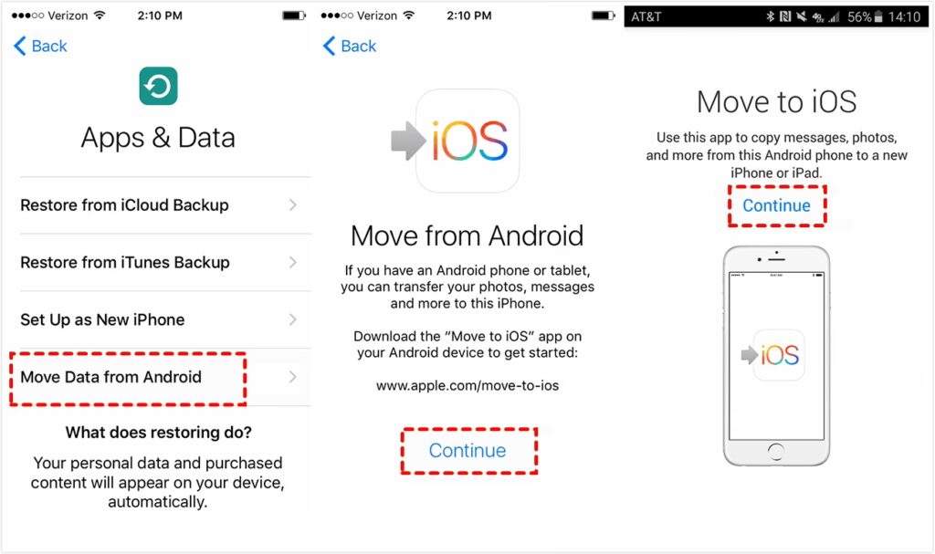 Follow the steps below to know how to transfer data from Samsung to new iPhone using Move to iOS. • Set up your iPhone and reach the Apps & Data screen. From there, select the " Move Data from Android " option. • On your Samsung phone, launch the Move to iOS app and carefully read and accept the terms and conditions provided.