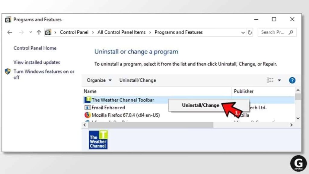 - Gennemgå listen over programmer for mistænkelige applikationer, du ikke kan genkende eller husker at have installeret.