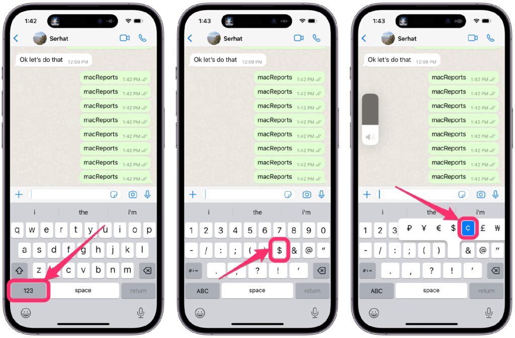 Indtastning af Centtegnet på iPhone og iPad (iOS)
