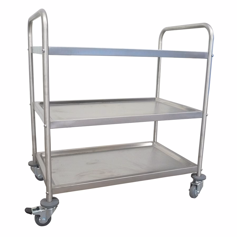 Disse er de mest almindelige og bruges til at transportere færdige retter fra køkkenet til spiseområdet, samt til at afrydde borde. De har typisk to eller tre hylder og er udstyret med robuste hjul, ofte med bremser, for sikker manøvrering.