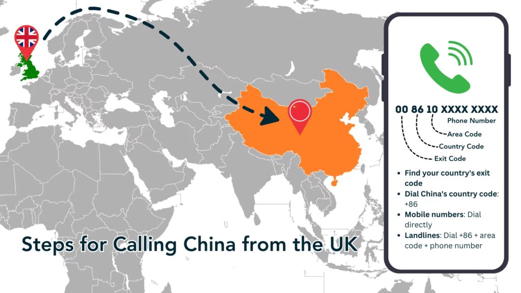 For Danmark er udgangsnummeret 00. Kinas landekode er 86.