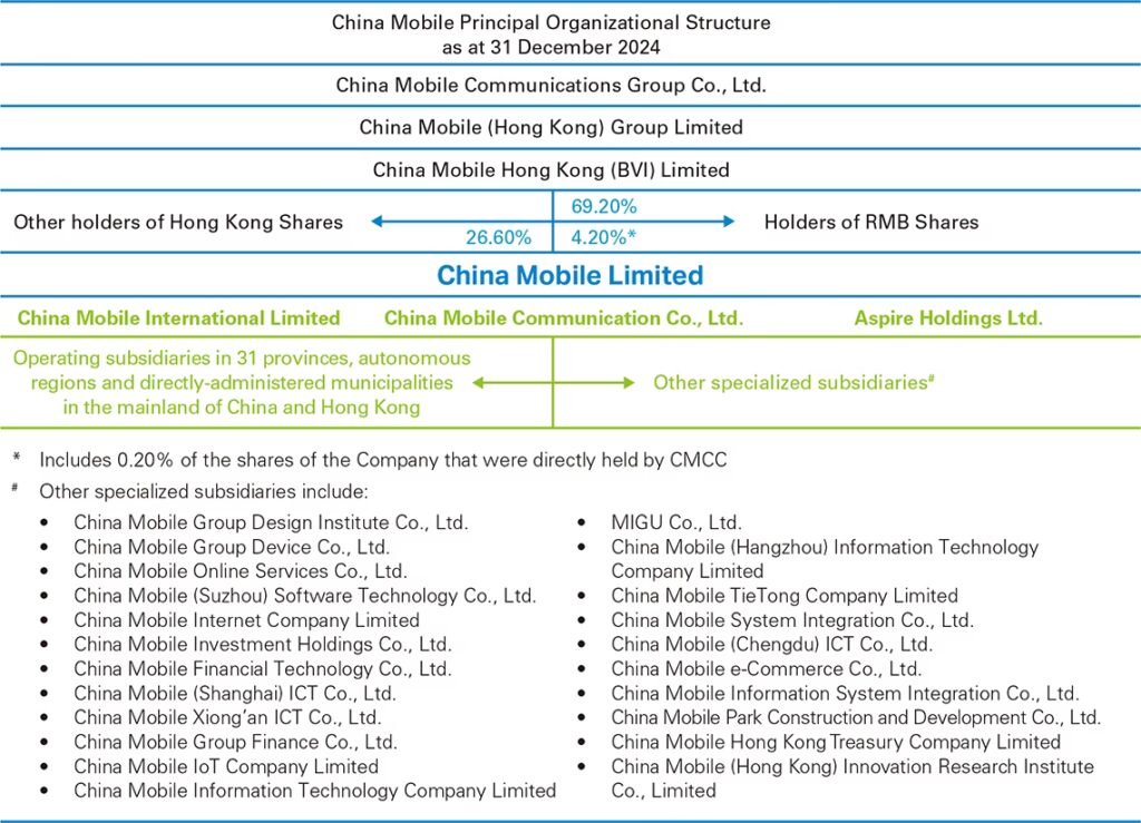 Den primære ejer af China Mobile Ltd. er den kinesiske stat gennem China Mobile Communications Group Co., Ltd.