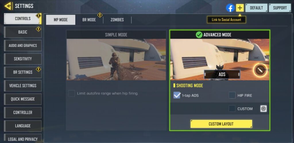 Dette er kernen i din interaktion med spillet. CoD Mobile tilbyder to grundlæggende kontroltilstande: 'Simpel' og 'Avanceret'. Vælg altid 'Avanceret' for at få fuld kontrol over dine handlinger.