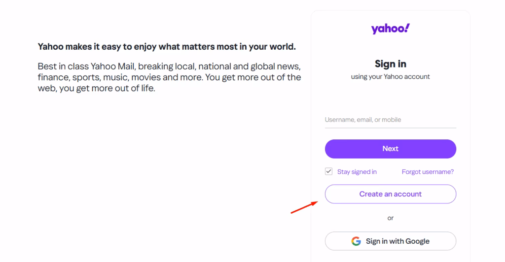 Det viser sig, at løsningen på at oprette en Yahoo-konto uden et direkte mobilnummer kan være lige for næsen af dig, og det involverer ingen kompleksitet. Yahoo tilbyder faktisk en mulighed for at oprette en konto uden at skulle indtaste et mobilnummer direkte, men det er ikke via den traditionelle 'Opret konto'-knap. På Yahoos login-side finder du et par yderligere login-muligheder, der udnytter eksisterende konti fra andre store platforme. Dette er en ofte overset, men yderst effektiv metode for dem, der ønsker at undgå at opgive deres mobilnummer.