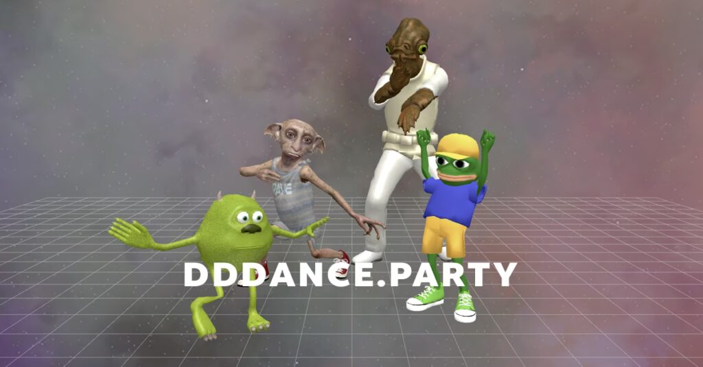 - dddanceparty er et interaktivt desktop-dansespil, der kombinerer berømte internet-memes med klassiske dansehits fra forskellige tidsperioder i en 3D-verden.