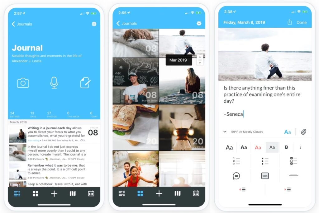 Day One er bredt anerkendt som en af de bedste journal-apps, der udelukkende er tilgængelig på Apple App Store. Appen har en smuk grænseflade og fantastiske organiseringsmuligheder, der lader dig sortere dine indlæg efter kategorier og farvekodede menuer. Du kan berige dine dagbogsindlæg med billeder, videoer, placeringer og vejrdata. Nylige opdateringer har introduceret mørk tilstand, stemmeoptagelse og en række andre nyttige funktioner. Day One prioriterer din privatliv med end-to-end-kryptering, Touch ID og Face ID-lås samt forskellige eksportmuligheder. Selvom appen er gratis at bruge, er der begrænsninger på mængden af multimedieindhold, du kan tilføje. En betalt version fjerner disse begrænsninger.