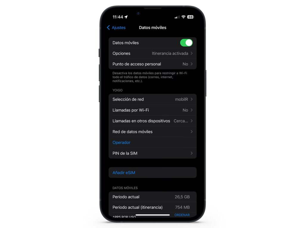 Efter installationen er det afgørende, at du sikrer dig, at både 'Mobildata' og 'Dataroaming' er aktiveret på din enhed. Selvom Digi bruger Movistars infrastruktur i Spanien, kan det at have dataroaming aktiveret hjælpe med at sikre en stabil forbindelse, især i områder hvor netværksforbindelsen kan være ustabil. Hvis du har et forudbetalt Digi-abonnement, skal du også sikre dig, at du har tilstrækkelig saldo på din konto, før du forsøger at oprette forbindelse til internettet.