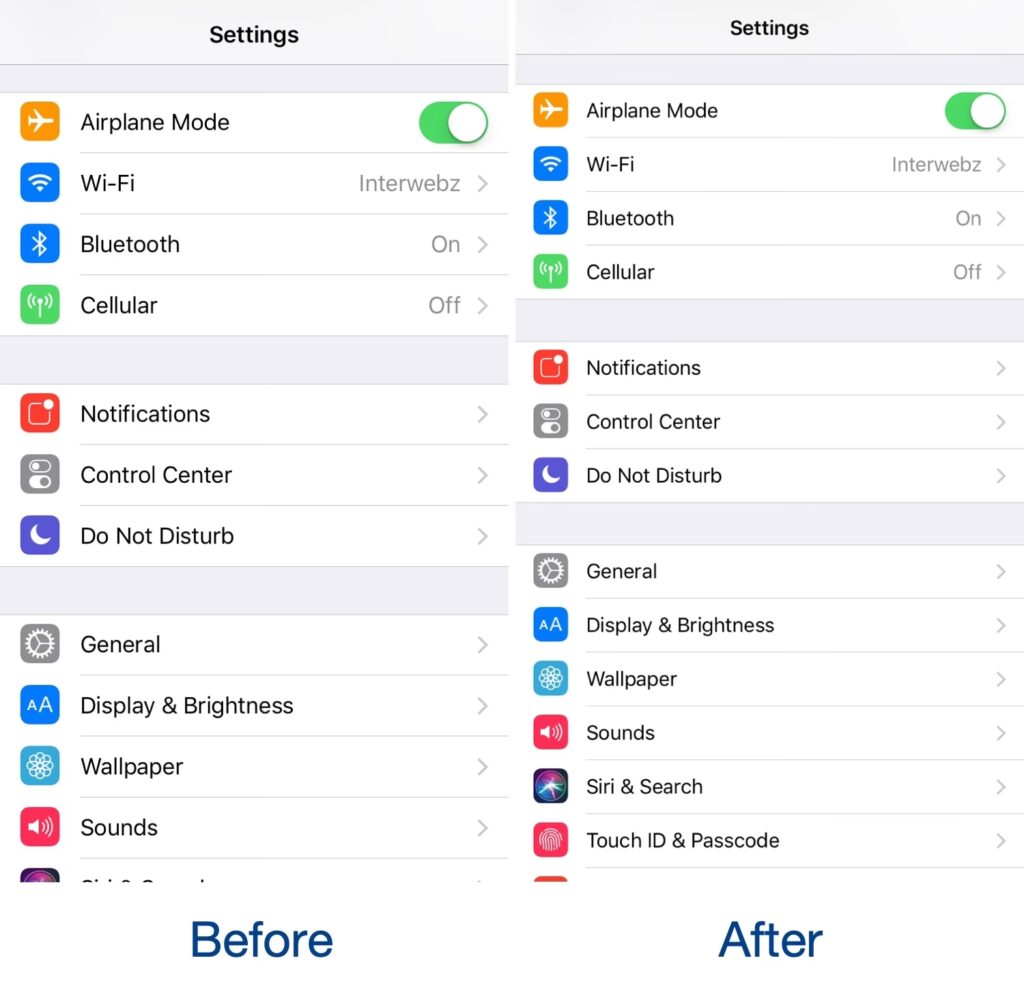 Tekststørrelse giver dig mulighed for at gøre teksten større eller mindre på tværs af hele din iPhone. Når du øger tekststørrelsen, svarer det til at reducere den effektive DPI, da de samme antal pixels bruges til at vise færre tegn, hvilket får dem til at se større ud. Omvendt, når du mindsker tekststørrelsen, øger du den effektive DPI.
