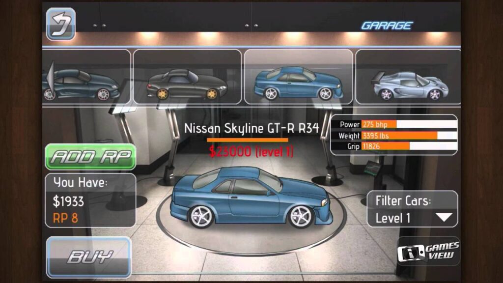 Drag Racing: Stort og voksende udvalg med regelmæssige tilføjelser og premium-biler med særlige buffs.