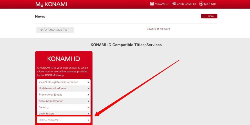 Hvis du spiller Duel Links på Steam, er din konto sandsynligvis også knyttet til en KONAMI ID. Processen for at slette din konto forbliver den samme: log ind på my.konami.net og følg sletningsproceduren.