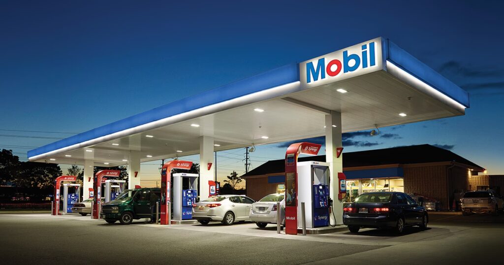 Mange Esso- og Mobil-stationer inkluderer også convenience stores, bilvask og andre serviceydelser. Udformningen og udbuddet af disse faciliteter kan variere betydeligt fra station til station.