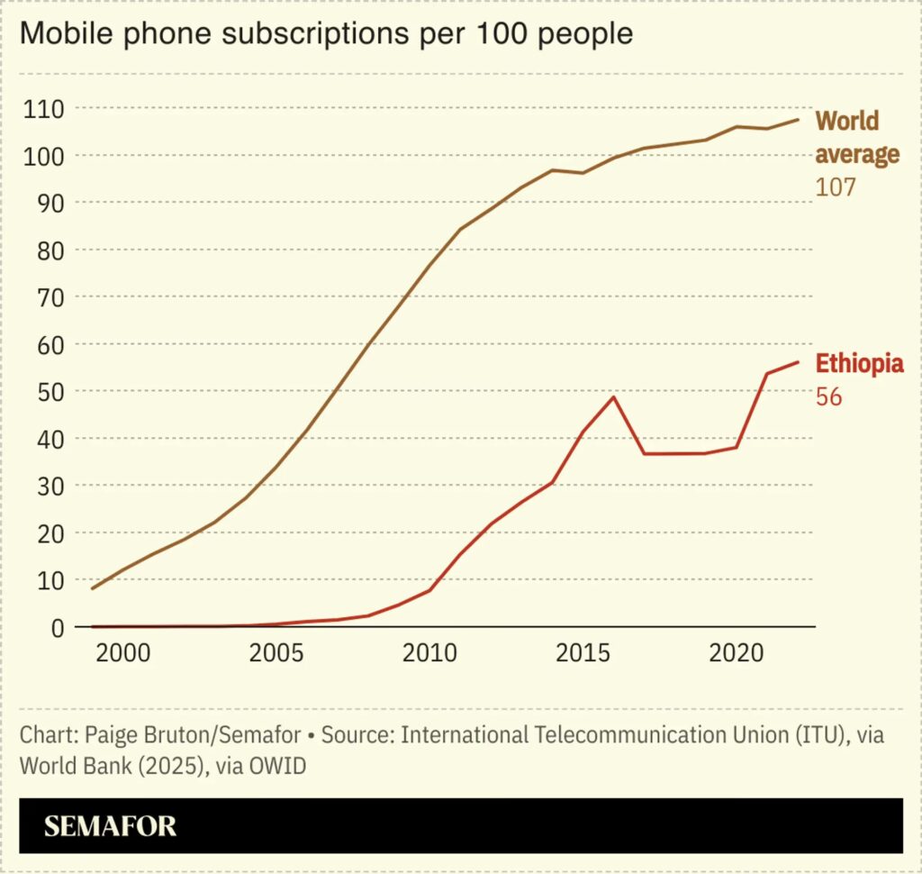 Statistikker fra kilder som National Bank of Ethiopia, rapporteret via platforme som Statista, viser en konstant stigning i antallet af mobil-/trådløse abonnenter hos Ethio Telecom. Denne vækst afspejler ikke kun en stigende efterspørgsel efter kommunikationstjenester, men også regeringens indsats for at forbedre digital infrastruktur og inklusion i landet. Mobiltelefoner er blevet mere end blot et kommunikationsmiddel; de er nu essentielle redskaber for økonomisk aktivitet, adgang til information, sundhedsydelser og uddannelse i mange dele af Etiopien.