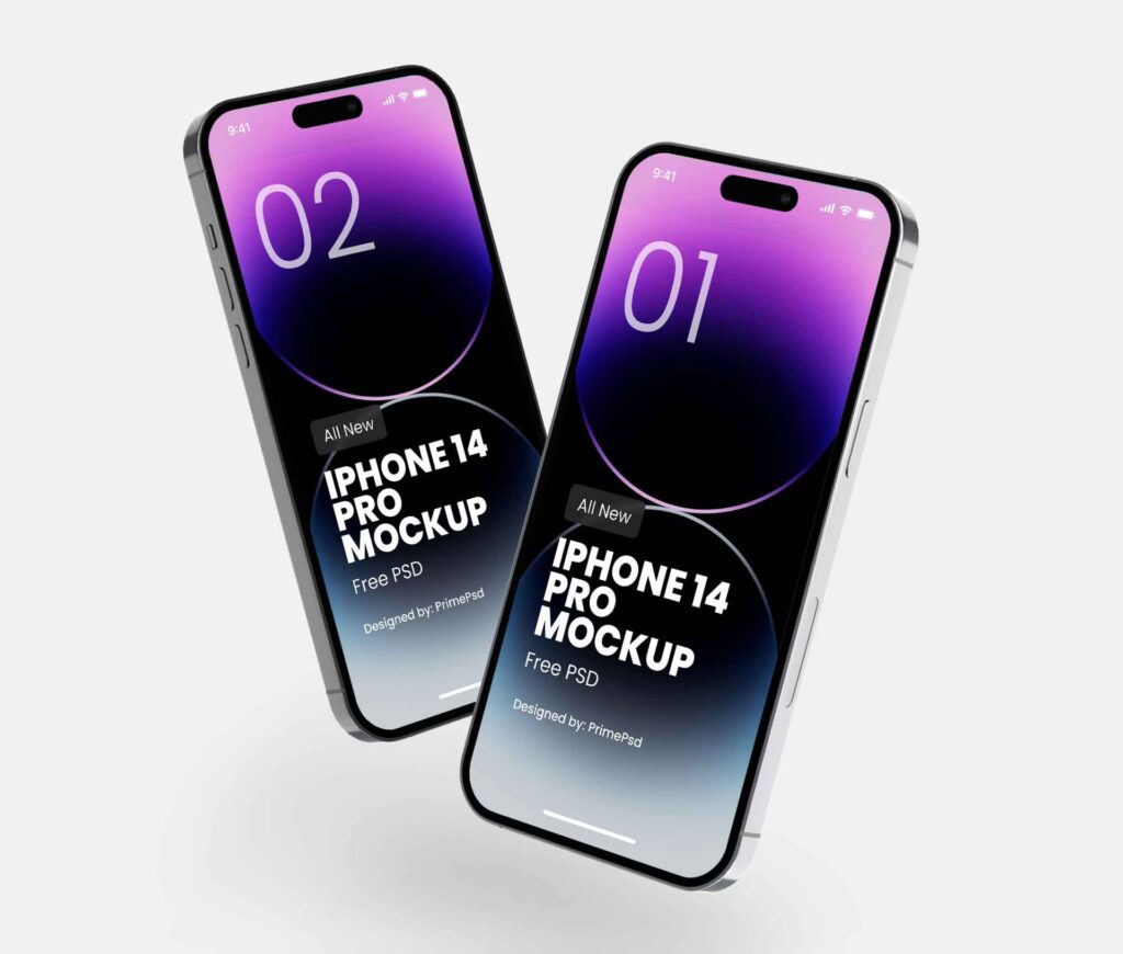 Et svævende iPhone mockup er en digital repræsentation af en iPhone, hvor enhedens skærm vises med dit eget design, men selve telefonen er positioneret, så den ser ud til at svæve frit i luften. I modsætning til traditionelle mockups, hvor enheden ofte er placeret på en flad overflade eller holdes i en hånd, skaber den svævende effekt en illusion af lethed og modernitet. Denne type mockup er utrolig populær, fordi den eliminerer distraktioner og sætter fokus udelukkende på skærmens indhold, hvilket gør det nemmere for beskueren at koncentrere sig om designet, appens interface eller hjemmesidens layout. Effekten opnås typisk gennem avanceret skyggearbejde, perspektiv og ofte en minimalistisk baggrund, der fremhæver enhedens isolerede position.