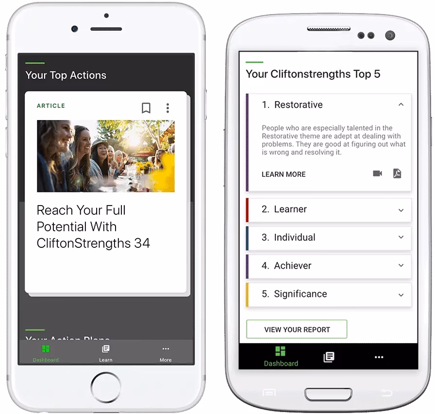 - CliftonStrengths Profiler: Se dine egne og dine teammedlemmers topstyrker. Dyk ned i detaljerede beskrivelser af hver styrke og lær, hvordan du kan udnytte dem optimalt.