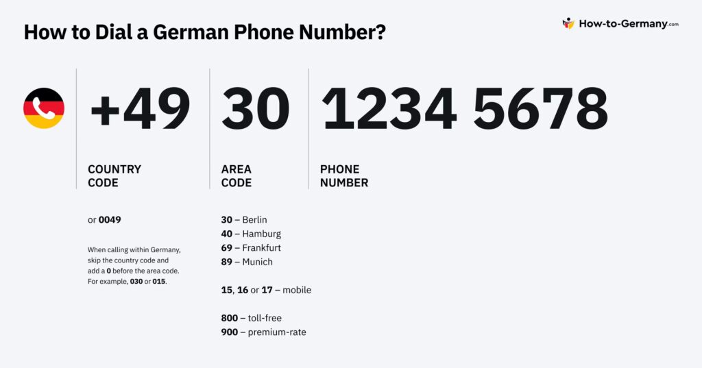 Tyskland har både gratisnumre (toll-free) og betalingsnumre (premium rate). Gratisnumre starter med 0800 og er gratis at ringe til for opkalderen. Disse bruges ofte til kundeservice. Betalingsnumre, der bruges til services som hotlines, lotterier eller specifikke informationslinjer, starter med 0900 og medfører højere omkostninger. Det er vigtigt at være opmærksom på disse præfikser for at undgå uventede udgifter på din telefonregning.
