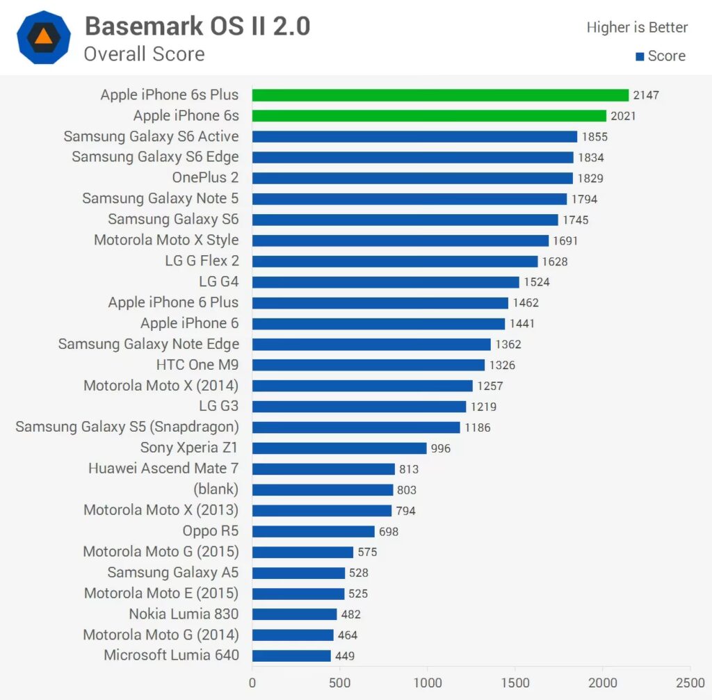 Som det ses, overgår iPhone 6s sin forgænger, iPhone 6, markant i begge kategorier. Dens single-core ydeevne er især bemærkelsesværdig og overgår selv mange Android-konkurrenter, der benytter octa-core processorer. En enkelt Twister-kerne i iPhone 6s leverer en ydelse, der kan sammenlignes med en 8-kernet processor i andre enheder.