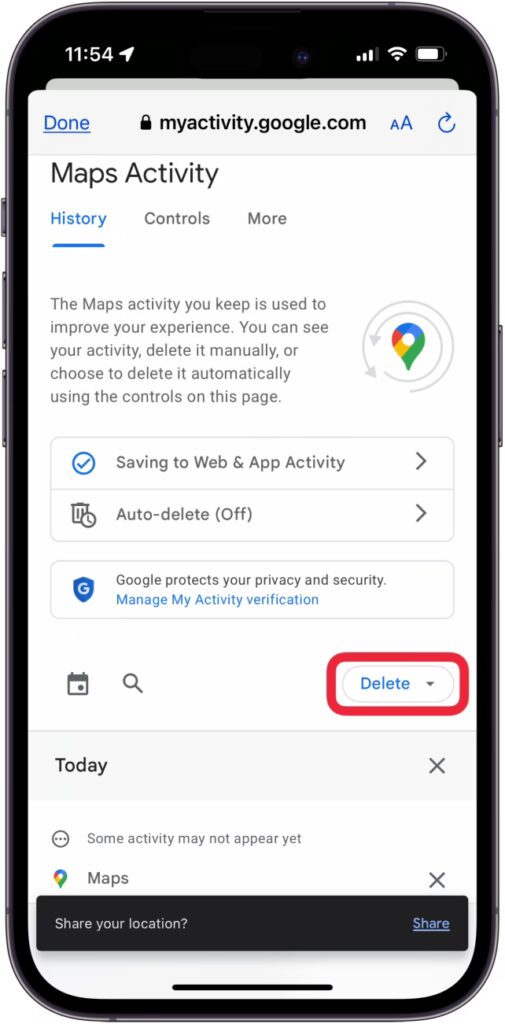 Vigtig Note: Hvis du har 'Web- og appaktivitet' slået til, kan visse lokationsdata stadig blive gemt i din generelle Google-konto, selv hvis du sletter den specifikke lokationshistorik i Maps. For fuldstændig kontrol over din data, bør du også gennemgå din 'My Activity'-side på Googles hjemmeside.