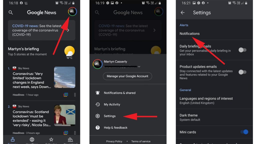 - Vælg "Nyhedsindstillinger".
