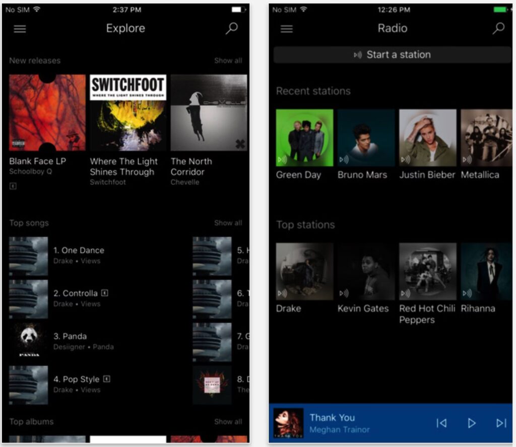 | Betalingsmodel | Gratis for OneDrive-musik, pass for streaming | Gratis (med reklamer), betalt for annoncfri |