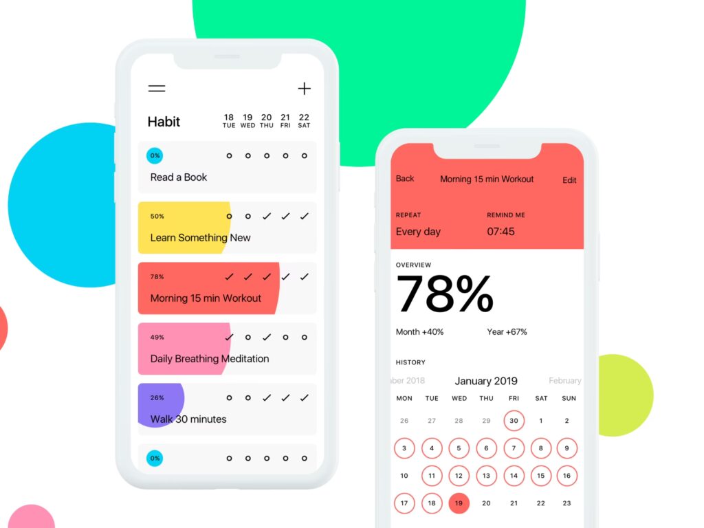 Everyday er en af de apps, der får vanespår til at føles… tilfredsstillende. Den er bygget op omkring et dødssimpelt koncept: Bryd ikke kæden. Du udfører din vane, du får en farvet prik. Gør det igen i morgen? Endnu en prik. Og over tid danner disse prikker en lang, farverig kæde, som du ikke ønsker at ødelægge. Det er lidt som at have din fremgang hængende over hovedet – på en god måde. Du begynder at tænke: “Jeg er kommet så langt… jeg kan lige så godt fortsætte.”