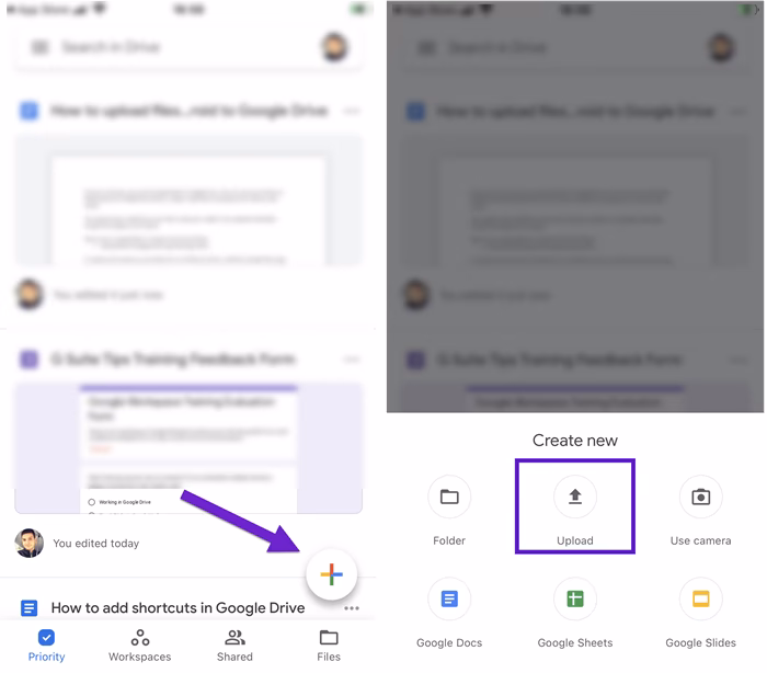 Sådan uploader du filer til et Shared Drive fra iPhone: