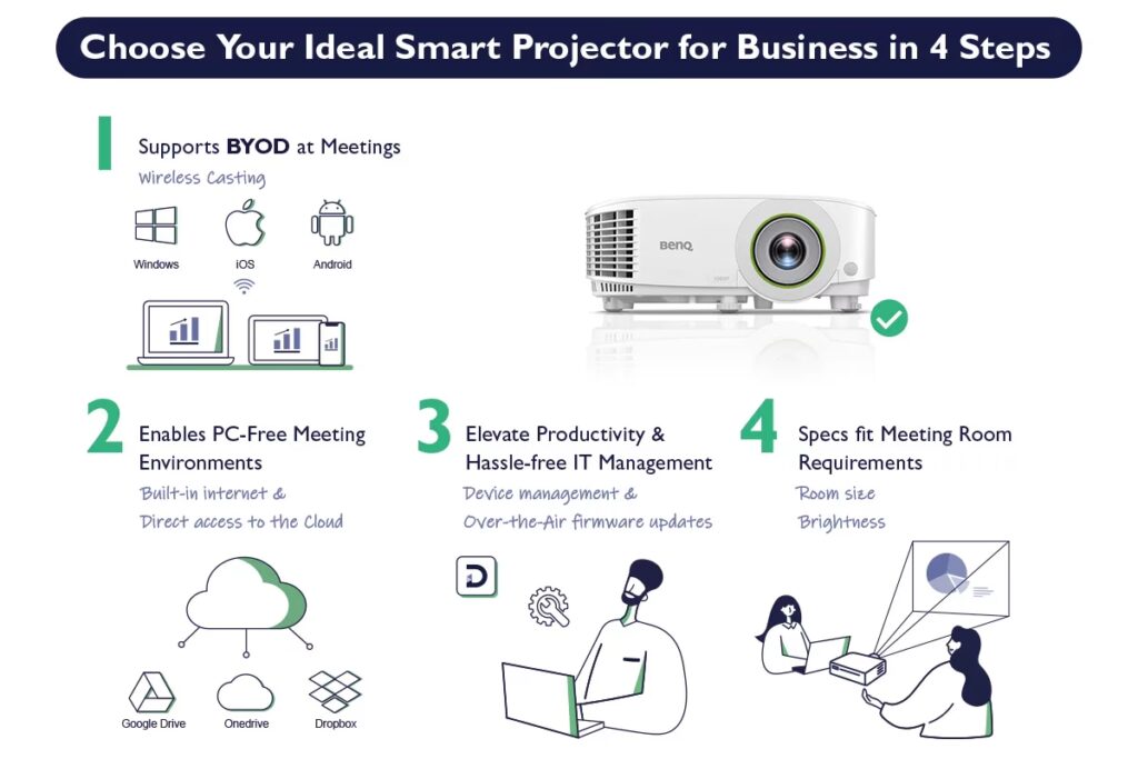 - Kompatibilitetsproblemer: Selvom de fleste projektorer er designet til at være bredt kompatible, kan der opstå kompatibilitetsproblemer med visse enheder eller operativsystemer. Specifikke apps eller trådløse standarder fungerer muligvis ikke med alle telefoner eller projektorer, hvilket kan hindre en problemfri projektionsoplevelse.