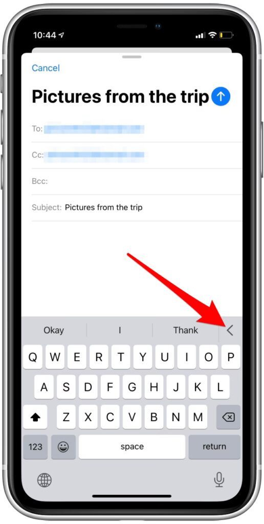 Når du har startet din nye e-mail, skal du trykke et hvilket som helst sted i e-mailens brødtekst – altså det store tomme felt, hvor du normalt skriver din besked. Dette vil få en menu frem over tastaturet med forskellige muligheder, herunder 'Indsæt foto eller video' og 'Tilføj vedhæftning'. Denne menu er din adgangsport til at tilføde alle slags filer til din e-mail.
