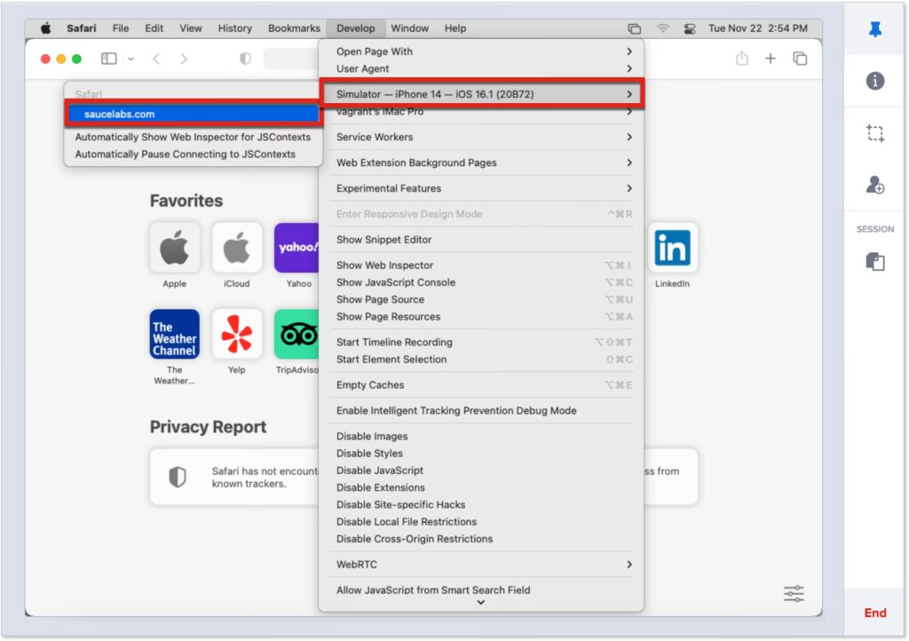 7. Klik på den webside, du ønsker at åbne i Web Inspector-konsollen på din Mac for optimering og fejlfinding.