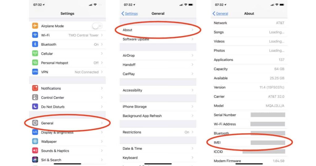 - På selve enheden: Gå til Indstillinger > Generelt > Om. Scroll ned, og du vil se dit IMEI-nummer.