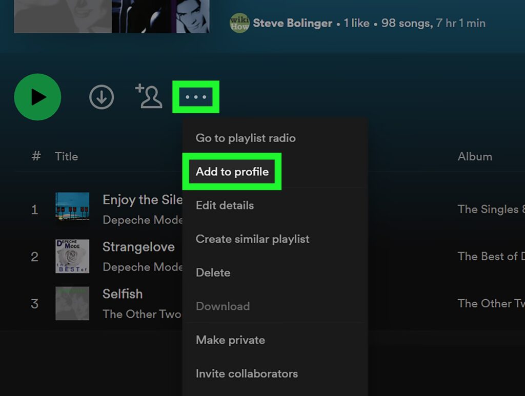 I valgmulighederne skal du trykke på "Gør offentlig". Tillykke! Du har nu sendt din afspilningsliste ud til Spotify-universet, hvor den kan opdages. Lad musikken spille og følgerne rulle ind! Når du har valgt denne mulighed, vil din afspilningsliste med det samme blive synlig for andre Spotify-brugere, der søger efter eller støder på den.