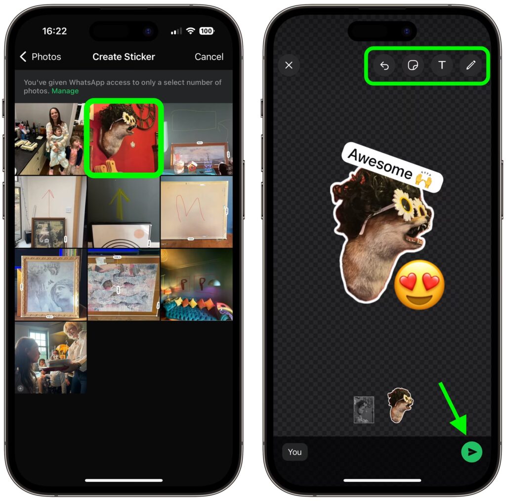 | Direkte oprettelse i WhatsApp | Ja (seneste iOS/Android) | Brug billeder fra din telefon til at lave statiske klistermærker med tekst og tegninger. |