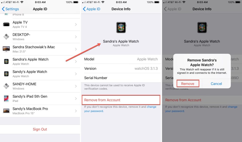 - Skift af Apple ID: Hvis du beslutter dig for at oprette en ny Apple ID, skal du fjerne dine enheder fra den gamle konto.