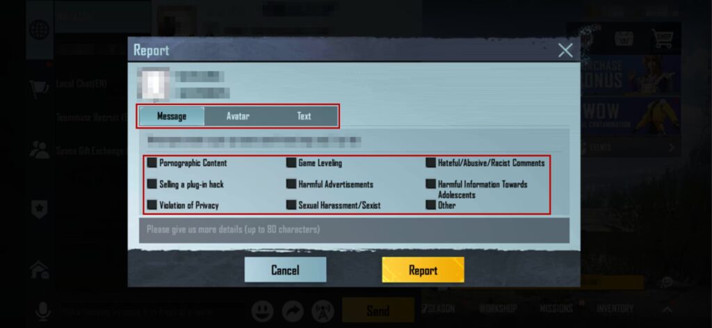 - Indsend rapporten: Når du har valgt den passende kategori, skal du bekræfte dit valg og indsend rapporten. Spillet sender derefter automatisk informationen, inklusive relevante data fra den netop afsluttede kamp (såsom spillerpositioner, skudmønstre og bevægelser), direkte til PUBG Mobile-teamet til gennemgang. Denne metode er ikke kun hurtig, men også yderst effektiv, da den leverer kontekstuel data direkte fra spilmotoren.