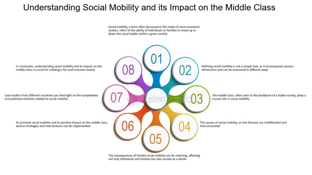 Grundlæggende handler social mobilitet om, hvordan faktorer som uddannelse, beskæftigelse, velstand og samfundsmæssige ændringer muliggør eller begrænser skift i samfundsmæssige positioner. Det er en indikator for et samfunds niveau af lighed eller ulighed, der påvirker adgangen til ressourcer og muligheder. Der findes to primære former for social mobilitet: vertikal og horisontal. Vertikal mobilitet indebærer at bevæge sig op eller ned i det sociale hierarki, hvilket fører til en ændring i økonomisk status, social klasse eller status. Eksempler inkluderer en fabriksarbejder, der bliver virksomhedsejer, eller en millionær, der går konkurs. Horisontal mobilitet henviser derimod til at ændre ens erhverv eller rolle uden et tilsvarende skift i socialt hierarki, såsom en lærer, der skifter til at blive journalist. At udforske de forskellige dimensioner af social mobilitet hjælper med at forstå dynamikken i samfundsstrukturen og potentialet for personlig og kollektiv fremgang inden for forskellige systemer og kulturer.