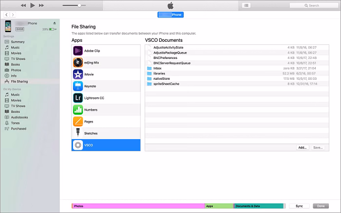 - Vælg App og Videoer: Vælg den app (f.eks. VLC, Pages, Keynote), der indeholder de videoer, du ønsker at overføre. Bemærk, at denne metode kun fungerer for videoer, der er gemt inden for specifikke apps, der understøtter Fildeling, ikke direkte fra Kamera-rullen.