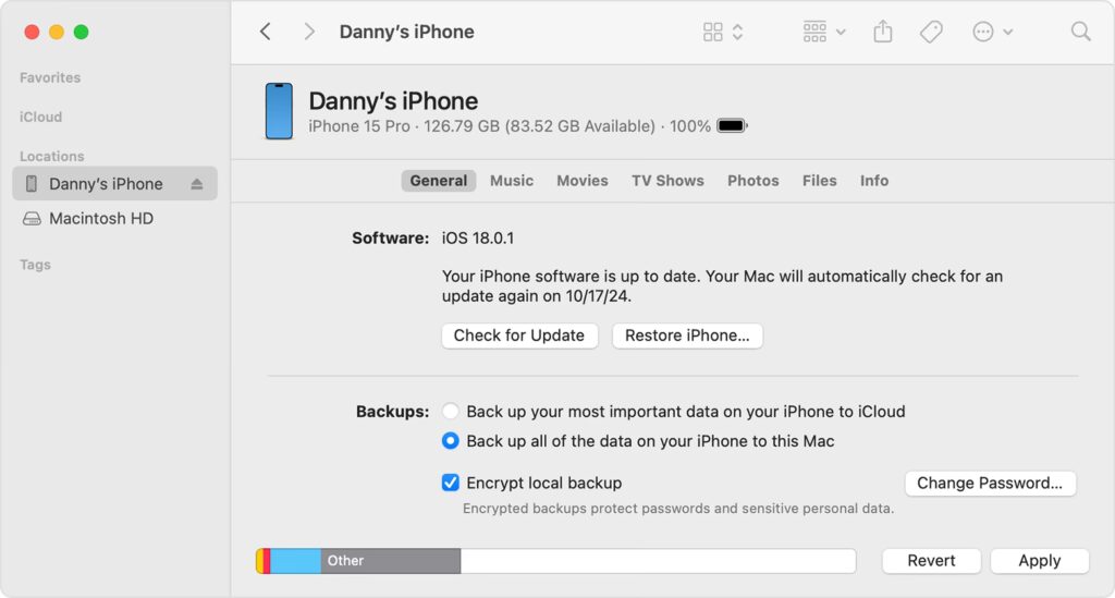 - Sikkerhedskopiering: Appen gør det nemt at tage en lokal sikkerhedskopi til din computer, hvilket mange foretrækker frem for iCloud-sikkerhedskopier.