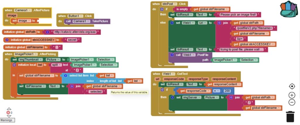 En typisk kamera-app, som vi har bygget her, består af flere nøglekomponenter:
