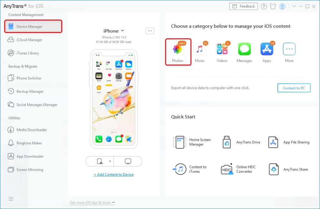 AnyTrans er et omfattende værktøj til håndtering af iPhone-data, der fungerer på både Windows og Mac. Det gør det nemt at administrere alle dine iPhone-billeder og -videoer. AnyTrans tilbyder en unik fordel ved at kunne overføre billeder uden kabel via sin iCloud Manager-funktion. Hvis du har iCloud Sync aktiveret, kan du flytte billeder til din computer uden et fysisk kabel, da AnyTrans giver dig mulighed for at flytte billeder fra iCloud til ethvert sted. Hovedfunktioner ved AnyTrans til iPhone-billedoverførsel:* Overfør billeder, beskeder, kontakter, musik og meget mere. * Mulighed for overførsel med eller uden kabel. * Administrer alle dine iPhone-filer effektivt. Sådan overfører du billeder direkte fra iPhone til computer via AnyTrans (med kabel):1. Download og kør AnyTrans på din computer. 2. Forbind din iPhone til computeren via et USB-kabel. 3. Klik på "Enhedshåndtering"-tilstanden og vælg derefter "Billeder"-muligheden. 4. Vælg de billeder, du vil overføre fra din iPhone til din computer. 5. Klik på knappen "Send til PC" øverst til højre for at overføre de valgte billeder. Overfør billeder fra iPhone til computer trådløst med AnyTrans-appen:Hvis du ikke har et USB-kabel ved hånden, eller din iPhone ikke genkendes af computeren, er AnyTrans-appen en fremragende hjælper til trådløs overførsel. 1. Installer AnyTrans-appen på din iPhone (tilgængelig i App Store). 2. Åbn din webbrowser på din computer, og besøg anytrans.io. 3. Scan QR-koden, der vises på websiden, med AnyTrans-appen på din iPhone. 4. Alle dine iPhone-billeder vil nu blive vist på din computers browser. 5. Vælg de ønskede billeder, og klik på "Download"-knappen for at overføre dem til din computer. Denne metode er ideel, da den sikrer, at både din iPhone og din laptop er forbundet til det samme Wi-Fi-netværk.